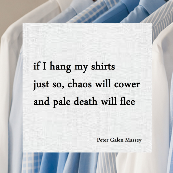 if I hang my shirts / just so, chaos will cower / and pale death will flee