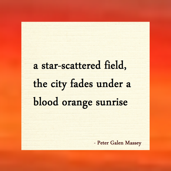 a star-scattered field, / the city fades under a / blood orange sunrise