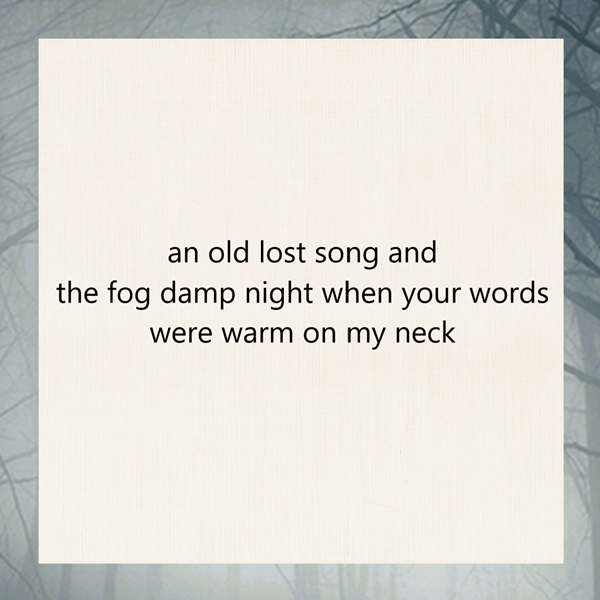 an old lost song and / the fog damp night when your words /were warm on my neck