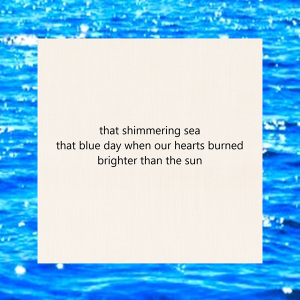 that shimmering sea / that blue day when our hearts burned / brighter than the sun