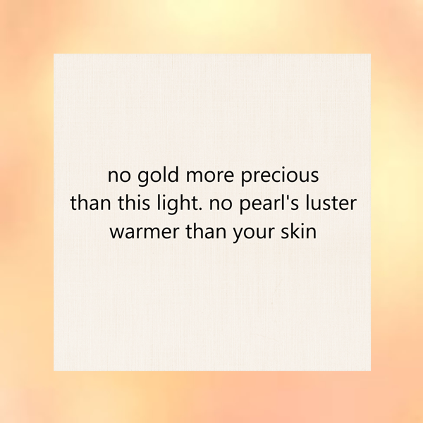 no gold more precious / than this light. no pearl’s luster / warmer than your skin