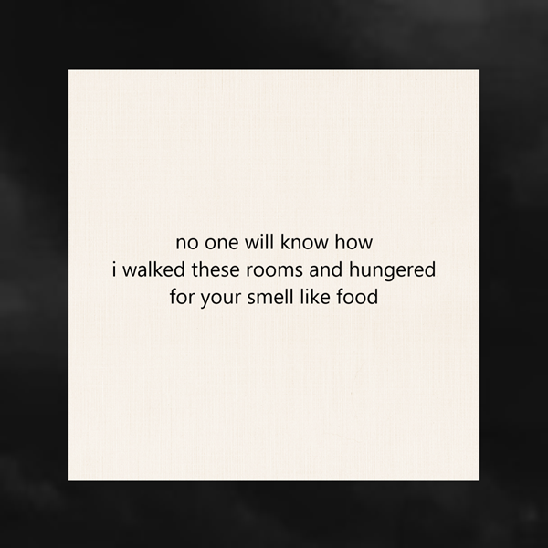 no one will know how / i walked these rooms and hungered / for your smell like food