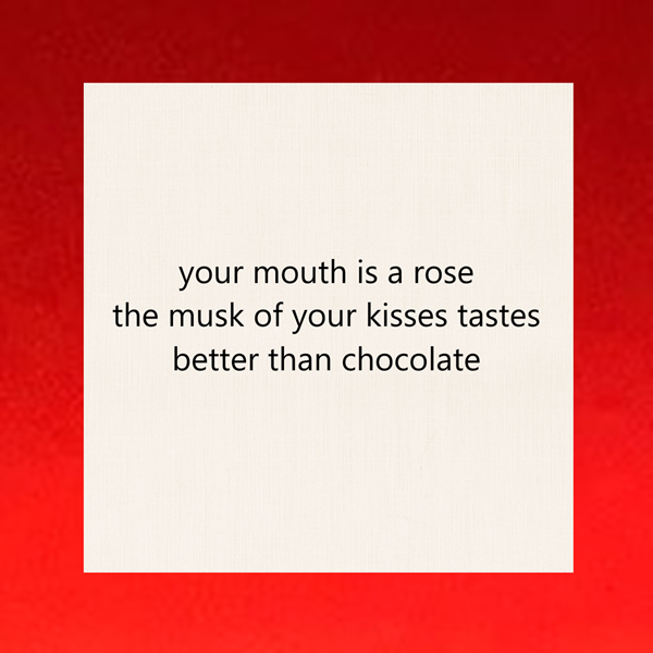 your mouth is a rose / the musk of your kisses tastes / better than chocolate