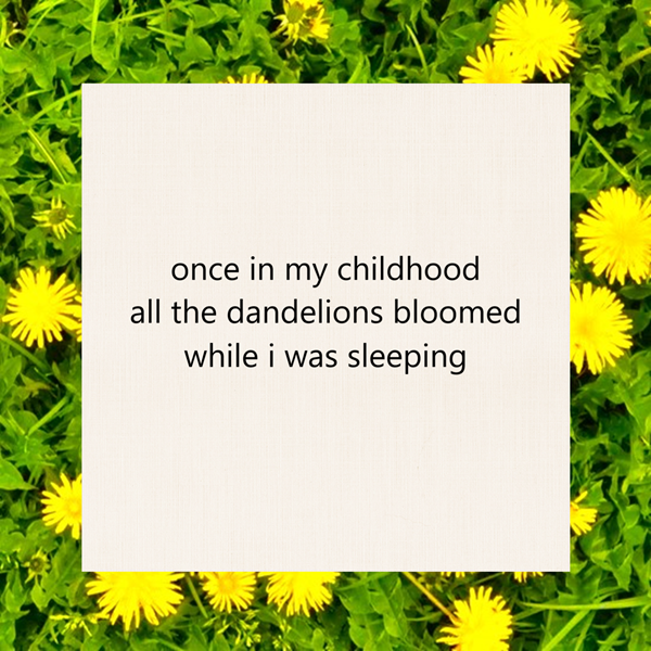once in my childhood / all the dandelions bloomed / while i was sleeping