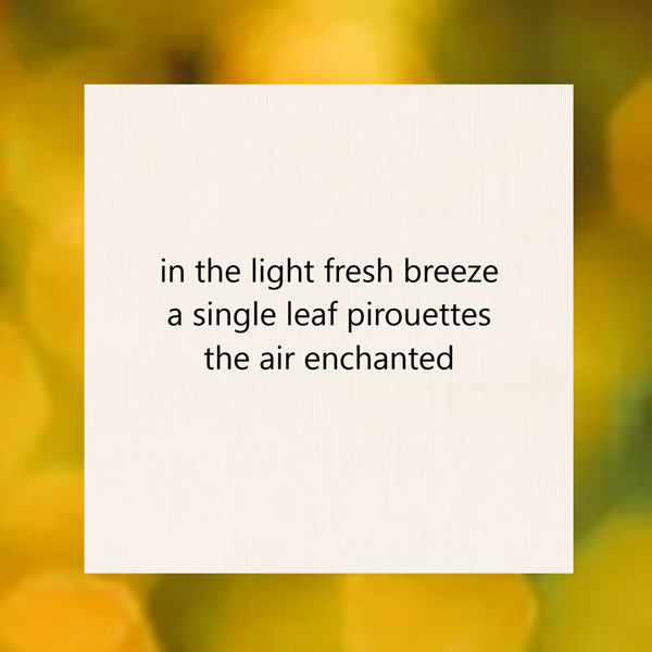 in the light fresh breeze / a single leaf pirouettes / the air enchanted