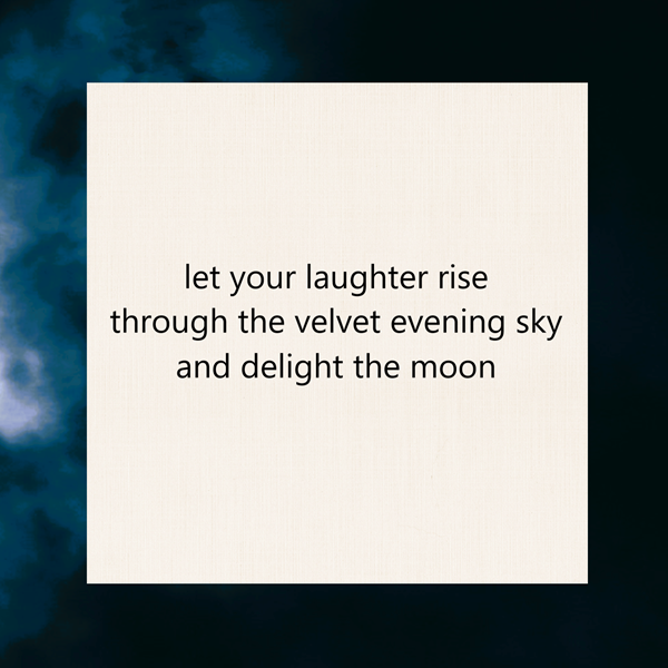 let your laughter rise / through the velvet evening sky / and delight the moon