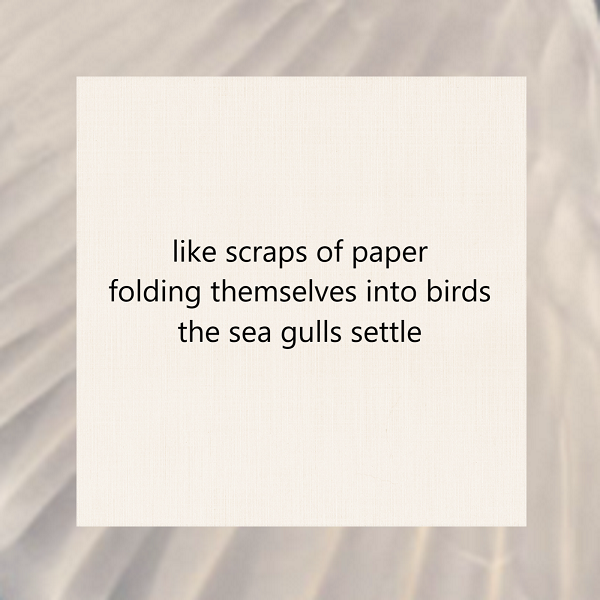 like scraps of paper / folding themselves into birds / the sea gulls settle