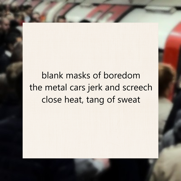 blank masks of boredom / the metal cars jerk and screech / close heat, tang of sweat