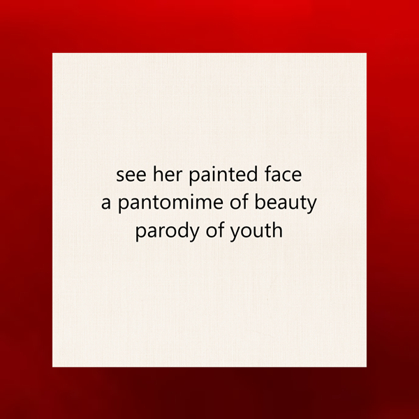 see her painted face / a pantomime of beauty / parody of youth